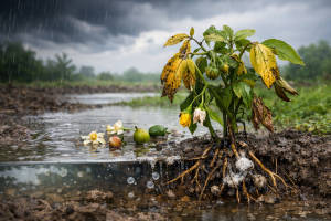 Los episodios de lluvias intensas, riegos mal gestionados o suelos con drenaje deficiente pueden provocar un problema silencioso pero devastador: el encharcamiento. Cuando el terreno permanece saturado de agua, el oxígeno disponible en la zona radicular cae en picado y la planta entra en un estado de “asfixia” fisiológica. El resultado suele ser una combinación de síntomas: brotación lenta o irregular, hojas cloróticas, pérdida de vigor, caída de flores o frutos recién cuajados y, con frecuencia, mayor sensibilidad a patógenos de raíz.