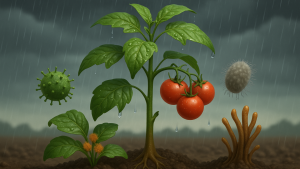 El exceso de humedad, la falta de ventilación y el estrés fisiológico de las plantas crean el entorno perfecto para que las enfermedades fúngicas y bacterianas se multipliquen. Mildiu, botritis, fusarium, phytophthora… nombres que cualquier agricultor conoce bien y que pueden reducir drásticamente el rendimiento si no se actúa a tiempo.